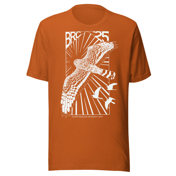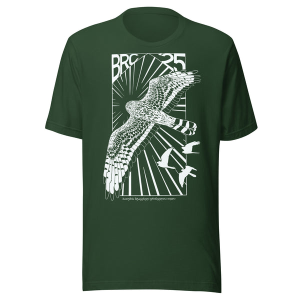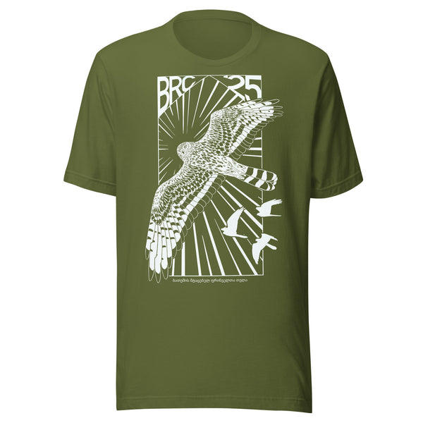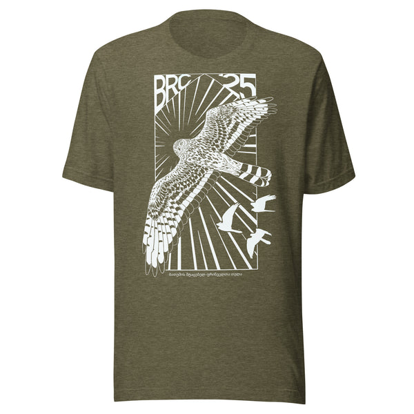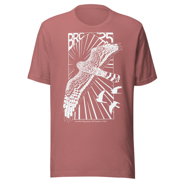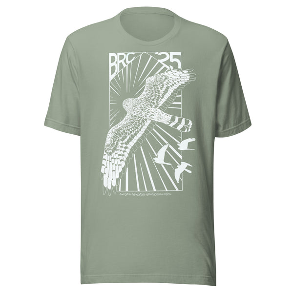 This year’s design features the understated strength of the adult female Montagu’s Harrier — a tribute to the many incredible women shaping this season’s migration count. With a clean, Soviet-inspired edge, this shirt pairs bold design with a quiet message of equality, power and presence.